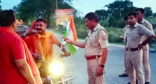 सावन के पहले रविवार को कोतवाली के प्रभारी निरीक्षक हरपाल सिंह ने शाम के वक्त कछला के समीप हाइवे पर कई शिव भक्तों के वाहनों में तिरंगा लगा उनमें देश भक्ति का जोश भरा वही अनुशासित तरीके से यात्रा को सम्पन्न कराने का आह्वान किया।