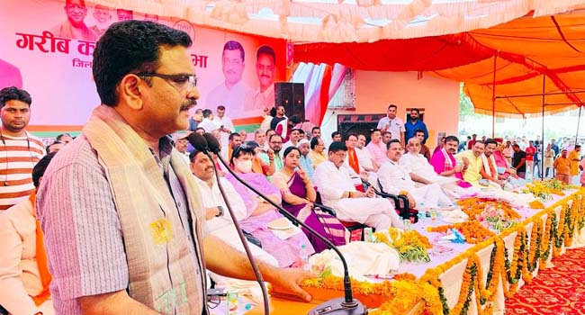 गरीब कल्याण जनसभा में बोलते हुए मुख्य अतिथि असीम अरुण ने कहा कि समाज कल्याण विभाग सदैव अंतिम पायदान पर खड़े हुए व्यक्ति के उत्थान के लिए काम करता है। उन्होंने कहा कि प्रधानमंत्री मोदी ने शपथ लेने के बाद कहा था ना समस्याओं को पालेंगे और ना टालेंगे, इसी क्रम में उन्होंने धारा 370 और 35ए को समाप्त कर दिया। बाबा साहेब डॉ० भीमराव अम्बेडकर ने जातिवाद, परिवारवाद को खत्म करने की परिकल्पना की थी लेकिन सपा- बसपा ने प्रदेश में जातिवाद और परिवारवाद को बढ़ावा देने का काम किया। विशिष्ट अतिथि राज्यमंत्री रामकेश निषाद ने कहा कि प्रत्येक व्यक्ति अपना प्रयास करे ताकि आत्मनिर्भर भारत की परिकल्पना साकार हो सके। प्रदेश में कानून व्यवस्था का राज कायम है, समाज का प्रत्येक व्यक्ति अमन चैन और खुशहाली से जीवन यापन कर रहा है। सांसद डॉ. संघमित्रा मौर्य ने कहा मोदी सरकार की प्रत्येक योजना गरीब कल्याण के उत्थान एवं सेवा को समर्पित रही है। सांसद धर्मेंद्र कश्यप ने कहा मोदी सरकार में जो हुआ वह देश की आजादी के बाद अब तक ना हो पाया, सभी देशवासी आज आजादी का अमृत महोत्सव मना रहे हैं, प्रधानमंत्री मोदी नए भारत का निर्माण कर रहे हैं। जिलाध्यक्ष राजीव कुमार गुप्ता ने कहा मोदी सरकार एवं योगी सरकार बिना जातिवाद बिना भेदभाव के सबका साथ सबका विकास के आधार पर काम कर रही है। अध्यक्ष जिला पंचायत वर्षा यादव ने कहा मोदी एवं योगी सरकार में माताओं- बहिनों को सुरक्षित वातावरण मुहैया कराया है। आज मोदी, योगी सरकार नारी सशक्तिकरण को खूब बढ़ावा दे रही है।
