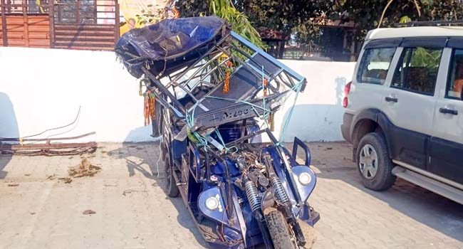 उझानी में सब्जी भरे ई रिक्शा को पिकअप कार ने रौंदा, गंभीर रूप से घायल हुआ चालक