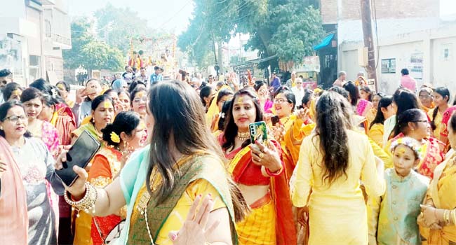 उझानी(बदायूं)। नगर के मिल कम्पाउंड स्थित प्राणेश्वर महादेव मंदिर एवं ब्रह्मदेव धाम पर राम दरबार, शिव परिवार, राधा-कृष्ण, देवी भगवती माता, शीतला माता की मूर्तियों की प्राण प्रतिष्ठा से पूर्व दो दिवसीय धार्मिक अनुष्ठान आहूत किए गए। मूर्तियों कोे प्राण प्रतिष्ठा से पूर्व नगर के विभिन्न मंदिरों का भ्रमण भव्य शोभायात्रा के साथ कराया गया। इस अवसर पर साथ चल रही महिला भक्त भाव विभोर होकर जमकर थिरक रहीं थीं।