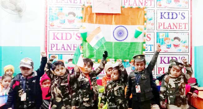 गणतंत्र दिवस के उपलक्ष्य में किड्स प्लेनेट स्कूल में देशभक्ति गीत प्रतियोगिता हुई जिसमें सभी बच्चों ने भाग लिया। प्रतियोगिता में आराध्या शिवांश जोहरी प्रथम, मान्या सय्यादा द्वितीय, आरुष शर्मा तृतीय, अयांश निकुंज आरोही थरेजा सांत्वना मानविक पीहू आरुष अग्रवाल एल के जी में प्रथम प्रारणिका गुप्ता द्वितीय गर्वित तनिषी तृतीया शिवाय माहेश्वरी यू के जी में प्रथम किजी द्वितीय माहिरा रिद्धिमा तृतीया भूमी रहे।इस अवसर पर संचालिका वंदना बब्बर ने बच्चों को गणतंत्र दिवस के बारे में बताया इस कार्यक्रम को सफल बनाने में शिवानी शुभी सोनम मुनज्जम राजकुमारी लक्ष्मी फातिमा का सहयोग रहा।