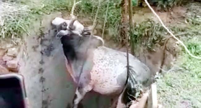 गांव सिकन्दराबाद निवासी भूरे नामक ग्रामीण के खेत में बने कुएं में बीती देर रात जंगली सांड गिर गया। बताते हैं कि आज सुबह कुएं के पास से गुजर रहे ग्रामीणों ने सांड की आवाज सुनी तो उन्होंने अन्य ग्रामीणों को बताया जिससे कुएं के पास बड़ी संख्या में ग्रामीण एकत्र हो गए। बताते हैं कि ग्रामीण ने पुलिस को सूचना दी जिस पर मुजरिया थाना के दरोगा नासिर अली टीम के साथ मौके पर पहुंच गए और ग्रामीणों से जानकारी लेने के बाद फायर बिग्रेड, वन विभाग और पशुपालन विभाग के डा. विवेक माहेश्वरी को सूचना दी जिससे सभी की टीमें मौके पर पहुंच गई और फिर ग्रामीणों के सहयोग से कुएं में गिरे सांड को निकालने के लिए रेसक्यू आपरोशन शुरू कर दिया। बताते है कि कई घंटों की मशक्कत के बाद सभी विभाग की टीमों ने जेसीबी की मदद से सांड को रस्सियों से बांध कर बाहर निकाल लिया। सांड के बाहर आने पर सभी ने राहत की सांस ली। सांड का पशु चिकित्सक डा. विवेक माहेश्वरी ने स्वास्थ्य निरीक्षण किया फिर वन विभाग की टीम ने जंगली सांड को जंगल में छोड़ दिया।
