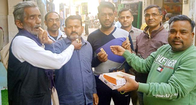 रामसेवक सिंह के भाजपा में शामिल होने पर मिठाई बांटकर समर्थकों ने मनाई खुशियां