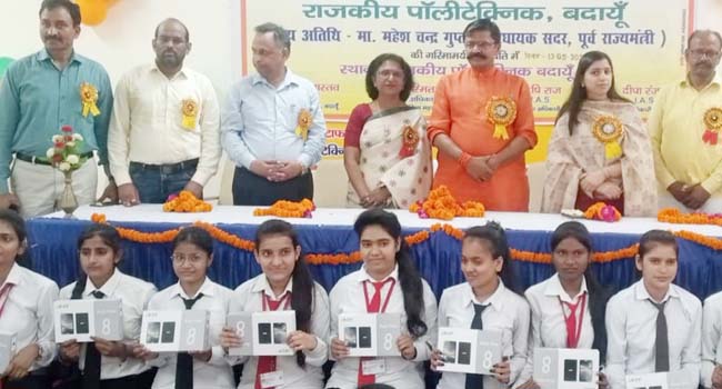 बदायूं। उत्तर प्रदेश शासन की स्मार्टफोन एवं टेबलेट वितरण योजना के अंतर्गत आज बदायूं के कुल 411 लाभार्थियों को टेबलेट वितरित किए गए। इस क्रम में सर्वप्रथम राजकीय पॉलिटेक्निक बदायूं के चारों ट्रेडज के अंतिम वर्ष के 169 छात्र छात्राओं को टेबलेट वितरण महेश चंद्र गुप्ता सदर विधायक एवं दीपा रंजन जिलाधिकारी के कर कमलों द्वारा किया गया।