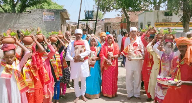 देवी देवताओं की मूर्तियों के साथ गांव में मातृशक्तियों और देवकन्याओं ने सिर पर शक्ति कलश धारण कर भव्य कलश यात्रा निकाली। कलश यात्रा का गांव के गलियारों में पहुंचने पर ग्रामीणों ने पुष्प वर्षा कर भव्य स्वागत किया। मंदिर में राधा कृष्ण, मां दुर्गा और हनुमान जी की मूर्तियों की प्राण प्रतिष्ठा की गई। इससे पूर्व मूर्तियों को गांव में भ्रमण कराया गया। मुख्य यजमान रामकुमार शर्मा पत्नी चमेली देवी, देव कुमार शर्मा पत्नी उषा देवी मुख्य यजमान के रूप में रही। इस अवसर पर नत्थू लाल राजपूत, मिथिलेश, योगेश शर्मा, दुर्गेश, वासुदेव शर्मा, पूजा, ज्ञान देवी, कोमल, नेहा, अंजलि राघव, शीला, देवबती, डोली आदि मौजूद रहीं।