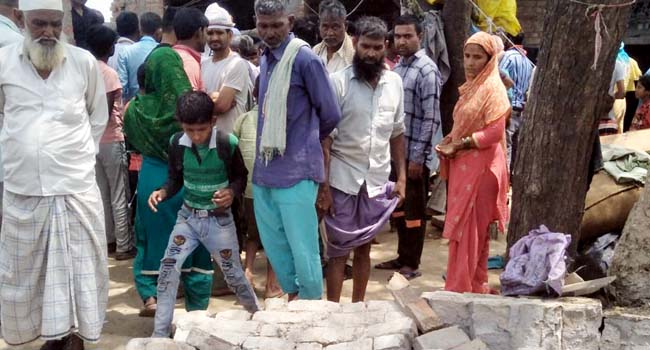 घटना गुरुवार दोपहर लगभग ग्यारह बजे की है जहां सालिम व इकरार के तीन बच्चे घर में बनी दीवार के सहारे खेल रहे थे जहां दीवार अचानक भरभारा कर गिर गई धमाका सुनकर परिवार वाले व ग्रामीण मौके पर पहुंच गए जिसमें दोनों भाइयों के तीन बच्चे दीवार में लगी पक्की ईंटों के नीचे दब गए जहां छोटे भाई सालिम के मासूम पुत्र सैफ उम्र चार साल की मौके पर ही मौत हो गई जबकि बड़े भाई इकरार के दो बच्चे नादिया व मोहम्मद अली गंभीर रूप से घयाल हो गए। मासूम की मौत के बाद परिवार में कोहराम मच गया । परिवार वालों ने जिसकी सूचना हल्का लेखपाल को दी। हल्का लेखपाल प्रदीप कुमार ने मौके पर पहुंच कर घटना का निरीक्षण किया है ।