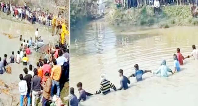 कासगंज जनपद में श्रद्धालुओं से भरी टैक्टर ट्राली तालाब में जा गिरी, 22 श्रद्धालुओं के मरने की सूचना, 10 घायल