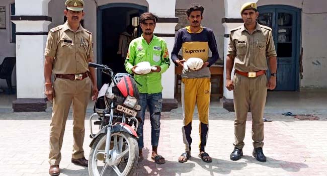 बीती रात कोतवाली प्रभारी निरीक्षक हरपाल सिंह बाल्यिान बदायूं बाइपास हाइवे पर वाहन चैकिंग अभियान चला रहे थे इसी दौरान वहां से गुजरे दो बाइक सवार युवकों को शक के आधार पर रोका तो वह हड़बड़ा गए जिस पर पुलिस ने दोनों की तलाशी ली तो दोनों पर एक-एक किलो गांजा के अलावा दो तमंचा व चार कारतूस बरामद हो गए। पुलिस ने दोनों को कोतवाली लाकर पूछताछ की तो आरोपियों ने अपना नाम मन्नान पुत्र साकिर और जराफत पुत्र निजाकत निवासी ककराला बताया। पुलिस ने दोनों के खिलाफ संबंधित धाराओं में अभियोग पंजीकृत करने के बाद आज जेल भेज दिया है। पुलिस ने दोनों से मिली बाइक के कागज न होने पर उसे सीज कर दिया है।