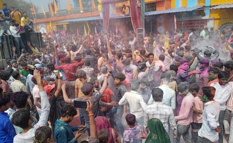 उझानी( बदायूं)। फाल्गुनी रंग एकादशी के पर्व पर बरेली मथुरा हाइवे रंग गुलाल से सराबोर नजर आया वही हाइवे स्थित खाटू नरेश श्याम बाबा के मंदिर पर जुटे हजारों नर नारी भक्तों ने बाबा श्याम के साथ रंग गुलाल से होली खेल कर बाबा श्याम के जयकारों से पूरा क्षेत्र गुंजायमान कर दिया।