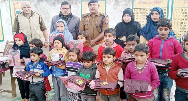 सहसवान (बदायूं)। सीओ चंद्रपाल सिंह ने मंगलवार को मो. अकबराबाद स्थित बालक प्राथमिक विद्यालय मे ठंड के मद्देनजर निर्धन मासूम बच्चों की जरूरत को देखते हुए उन्हें स्कूल ड्रेस, जूते, मोजे, जर्सियां बांटी। सीओ से ड्रेस,जूते,मोजे जर्सियां पाकर बच्चों के चेहरे खिलखिला उठे। इस दौरान बच्चों की हालत पर सीओ भावुक हो उठे।