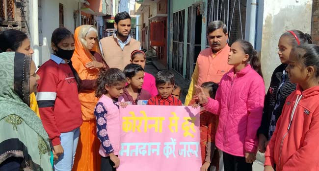 उझानी,(बदायूं)। शांतिकुंज हरिद्वार के मार्गदर्शन में चल रहे प्रखर बाल संस्कारशाला के बच्चों ने कोरोना से दूर.मतदान करें जरूर कार्यक्रम के अंतर्गत मुहल्ला श्री नारायणगंज में लोगों को मतदान के लिए प्रेरित किया। गायत्री परिवार के संजीव कुमार शर्मा ने कहा कि राष्ट्र को नई ऊँचाईयों पर प्रतिष्ठित करने के लिए सच्चे, सच्चरित्र और ईमानदार जननायकों को चुनें। अपने मताधिकार का प्रयोग करें।