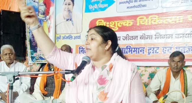 कार्यक्रम के अपराह्न सत्र में करनाल हरियाणा से पधारी आर्य समाज की स्टार प्रचारक सुश्री अंजलि आर्य ने कहा कि अगर हम सबको अपनी संस्कृति बचानी है तो अपने बच्चों में संस्कार पैदा करने होंगे और उनको दयानंद सरस्वती जी के पदचिन्ह पर चलना होगा आज भारत की शिक्षा पद्धति मैकाले की चल रही है उसे स्वामी रामदेव जी ने प्रयास करके बदलने का संकल्प लिया है जो बहुत जल्द हमको दिखाई देगी गुरूकल व्यवस्था ही हमारी संतान में अच्छे विचार और आचरण पैदा कर सकती हैं आज हम सबको वेदों को पढ़ना और उनके अर्थ को समझना भी होगा तभी स्वामी दयानंद का सपना साकार हो सकेगा। उन्होंने कहा कि स्वामी दयानंद सरस्वती के सत्यार्थ प्रकाश को पढ़ियंे और जानिए धर्म क्या है आज अलग अलग मत है सबके ,धर्म एक ही होता है वो है वैदिक धर्म हम आर्य है हमें अपने ऋषि मुनियों पर गर्व जो हमको पहले से ही हमारे वेदों में लिखकर गये है उसका अध्ययन और उसका प्रचार-प्रसार जरूरी है तभी हम तर्क कर सकते हैं।