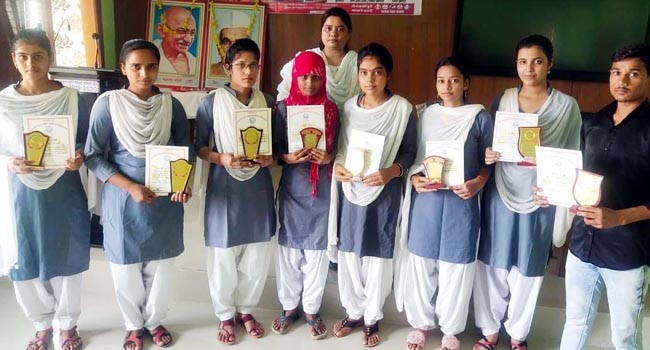 प्रतियोगिता में सफल रहने वाली छात्र.छात्राओं को प्राचार्या डा.वसुधा श्रीवास्तव ने सौम्या माहेश्वरी, शिवानी, दलबीर, विनीता यादव, रचना, अरुण सहगल, सोनी चौहान, अंजलि, दीक्षा तिवारी और आदित्य कुमार सिंह को प्रतीक चिन्ह देकर सम्मानित किया। राष्ट्रीय सेवा योजना के कार्यक्रम अधिकारी डॉ पंकज कुमार सिंह ने महात्मा गांधी के जीवन संघर्ष उनकी देश सेवा और उनके जीवन मूल्यों के बारे में विस्तार से बताया। कार्यक्रम का संचालन कर रही आराधना वर्मा ने महात्मा गांधी का महिलाओं के प्रति दृष्टिकोण उन्हें सशक्त बनाने के प्रयासों एवं शिक्षित होकर किस प्रकार से अपने अधिकारों के प्रति सजग हो सकती है अपना सारगर्भित विचार रखा। इस मौके पर अब्दुल रईस, सुभाष बाबू, सतेंद्र, आरती, शिवानी आदि मौजूद रहे।