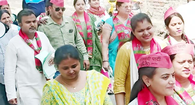 उझानी। सपा महिला कार्यकर्ताओं ने श्रीमती स्वाती गुप्ता के नेतृत्व में पुरानी अनाज मंडी भदवारगंज इलाके के घ-घर पहुंच कर सपा प्रत्याशी रजनीश गुप्ता को वोट देकर जीत दिलाने का आह्वान किया। इस दौरान स्वाति गुप्ता, निधि गुप्ता, विजय गुप्ता, नितिन गुप्ता, प्रदीप गुप्ता, ध्रुव यादव, वन्दना गुप्ता, पारूल सपरा, विनीत यादव, सुमित गुप्ता, प्रियंका विश्वास, संचित जैन, रिया रूपा जैन, ,पंकज गुप्ता, भावना जैन, रजनी गुप्ता, याशिका जैन, समर गुप्ता, झिलमिल गुप्ता आदि साथ रहे।