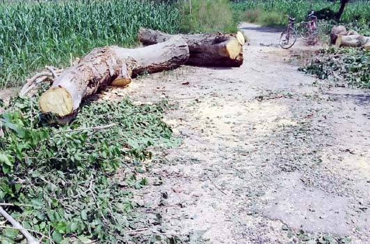 रविवार की सुबह बमनौसी से अल्लापुर चमारी के मध्य सम्पर्क मार्ग पर ओमकार के खेत के समीप खड़े चंदनियां के पेड़ लकड़ी माफियों ने काट लिए और सड़क पर डाल दिए। बताते हैं कि पेड़ काटने की सूचना जागरूक ग्रामीणों ने पुलिस को दी लेकिन पुलिस ने माफियाओं के खिलाफ कोई प्रभावी कदम नही उठाया।